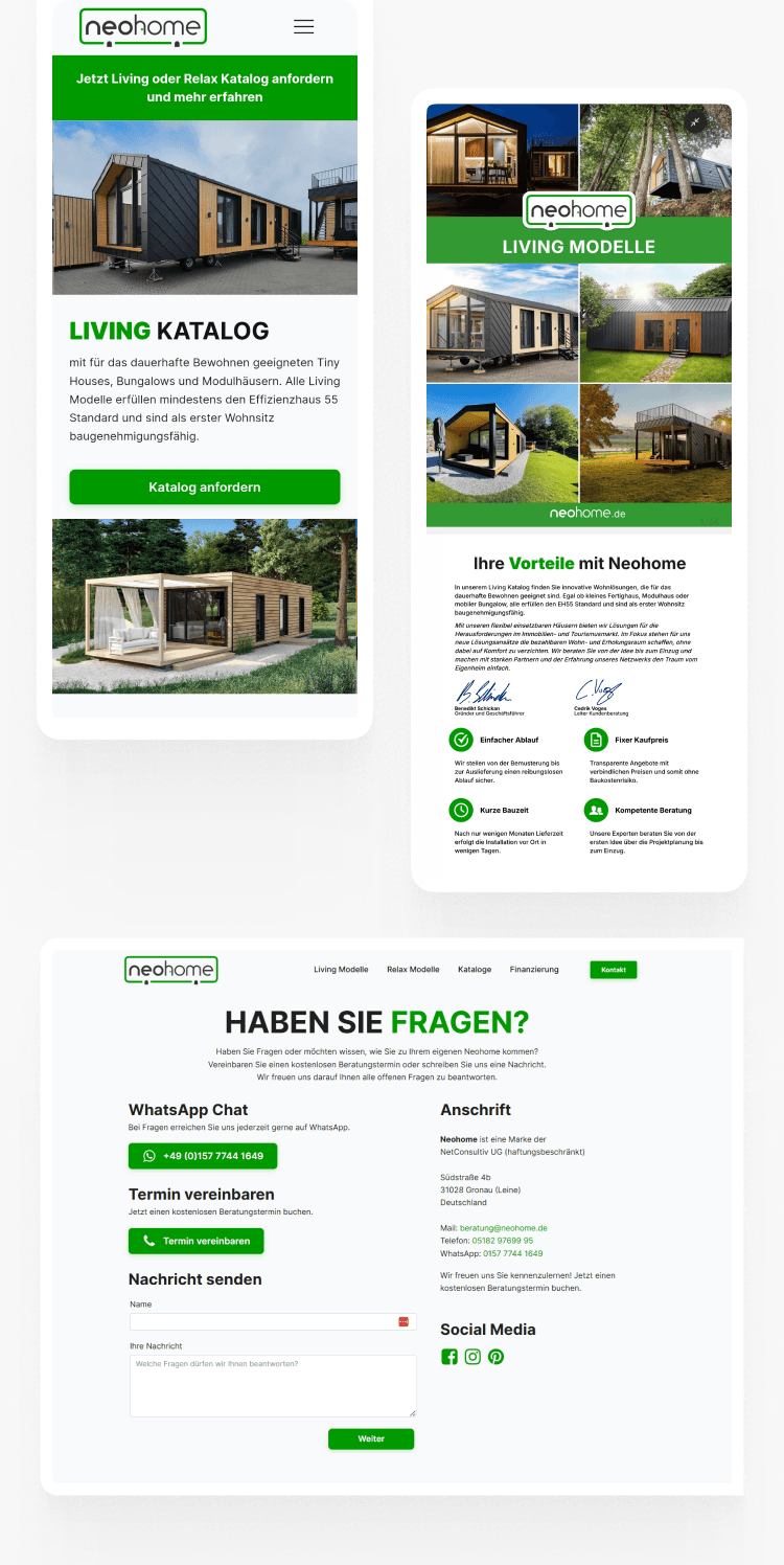 Online Marketing & Lead Generation To generate qualified inquiries, we relied on a targeted online marketing strategy. A key tool was the Neohome catalog, which functioned as an effective lead magnet via download, providing valuable customer data.