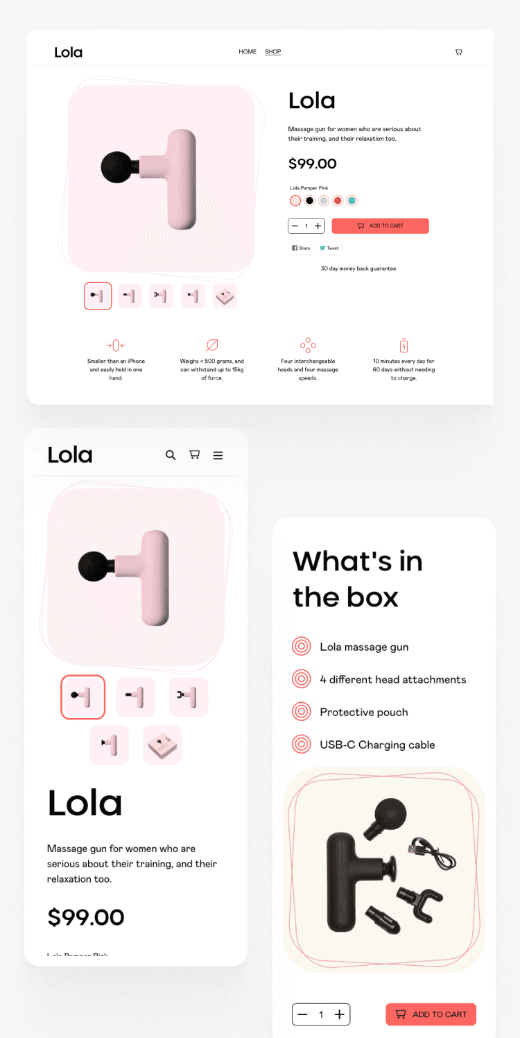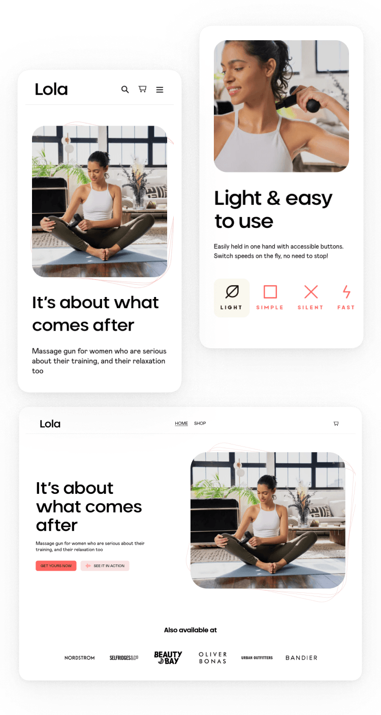 Meetlola sells massage guns for women who are serious about their training, and their relaxation too. It was our shopify experts task to integrate their custom design into their shopify page.